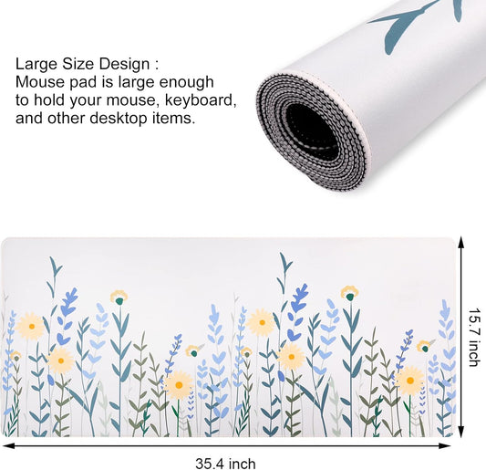 Desk Mat, Gaming Mouse Pad Large, Desk Pad (35.4 X 15.7 Inch), Water-Resistant Mousepad, Keyboard Pad with Stitched Edges, Non-Slip Rubber Base Mousepad for Home Office Decor(White Floral)